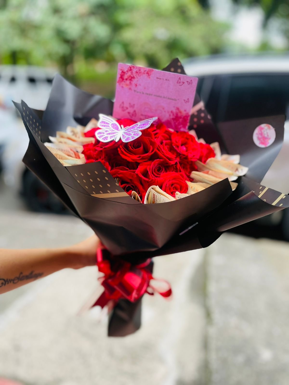 El ramo no solo es un símbolo de afecto y aprecio, sino también una expresión de creatividad y lujo. Las rosas, conocidas por su fragancia embriagante y su estética delicada, son el complemento perfecto para los billetes, que aportan un toque de exclusividad y sorpresa al regalo. Ya sea para lograr un impacto inmediato o dejar una impresión duradera, esta combinación única hace que el ramo de rosas y billetes sea inolvidable.